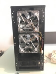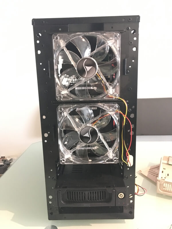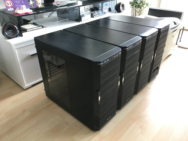 Die Maschine ist direkt mit Frischluft von vorne mit mehreren Lüftern über die HDD's durchströmt und sorgt so für eine kühle Atmosphäre im Server